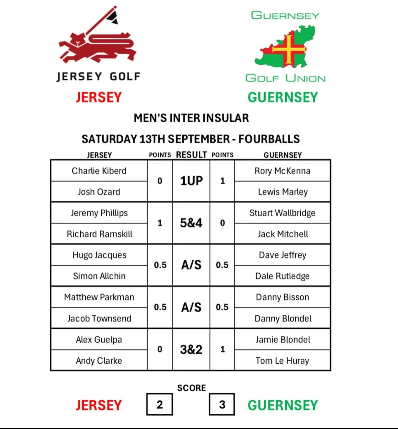 Geoffrey Troop September 14, 2025 Mens Inter Insular Day 1 results Geoffrey Troop September 14, 2025 Guernsey Men trail 7-3 after day 1