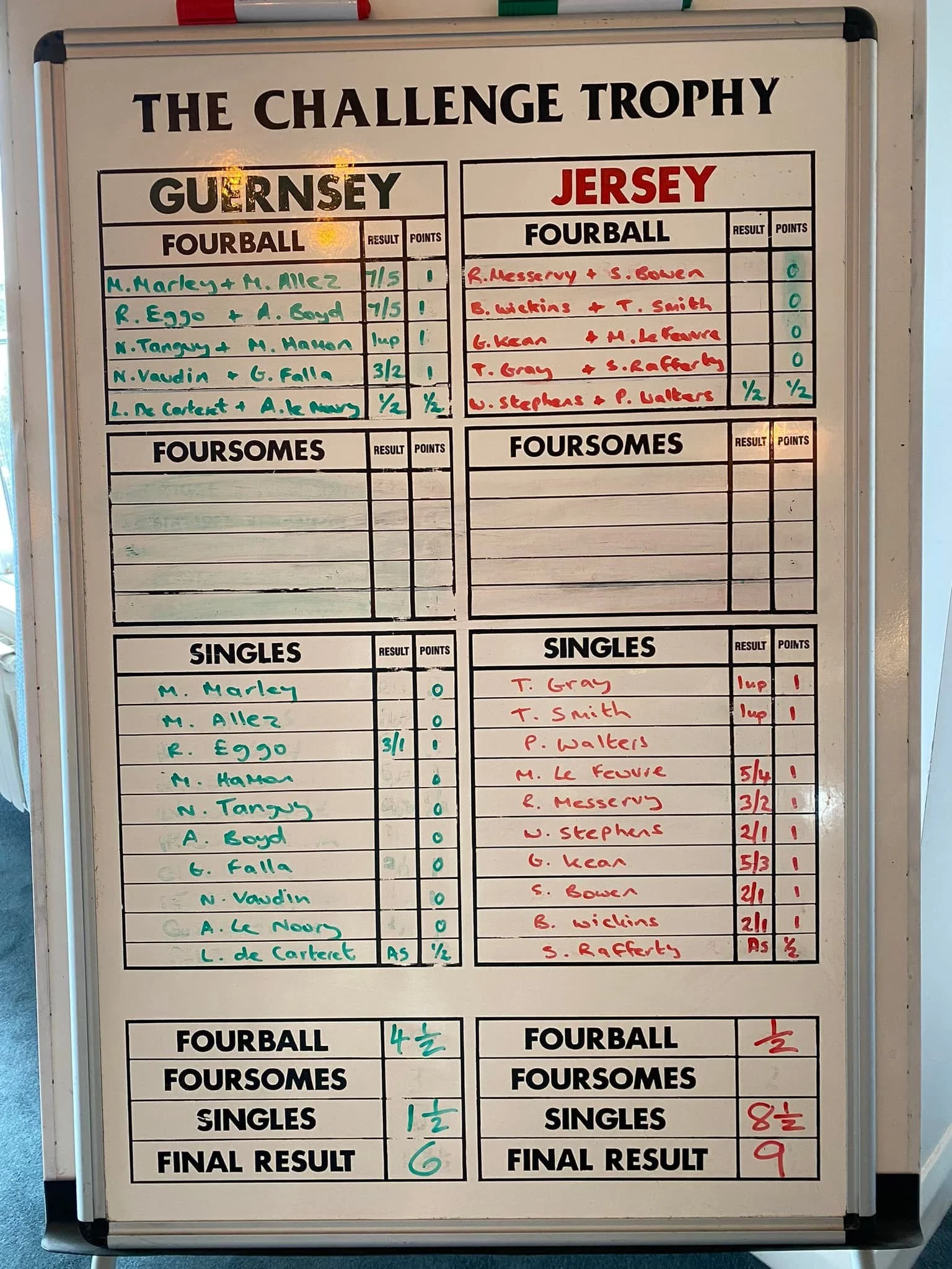 Jersey have won the Seniors Inter Insular, many congratulations to Jersey.